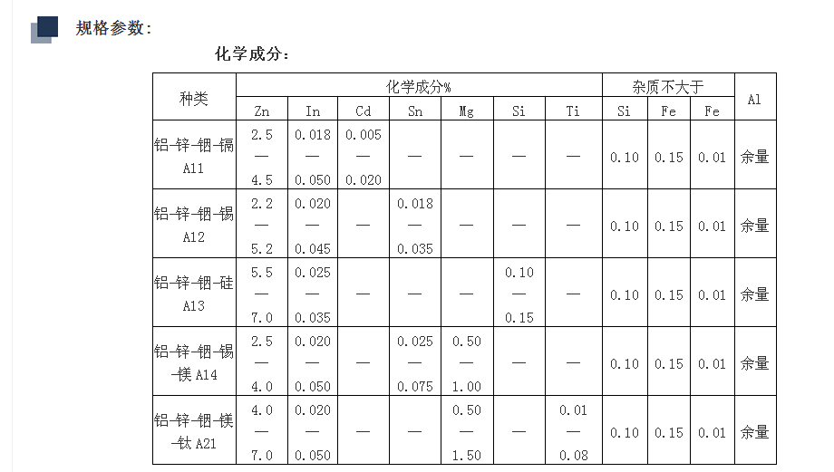 (1)普通鋁合金犧牲陽(yáng)極;